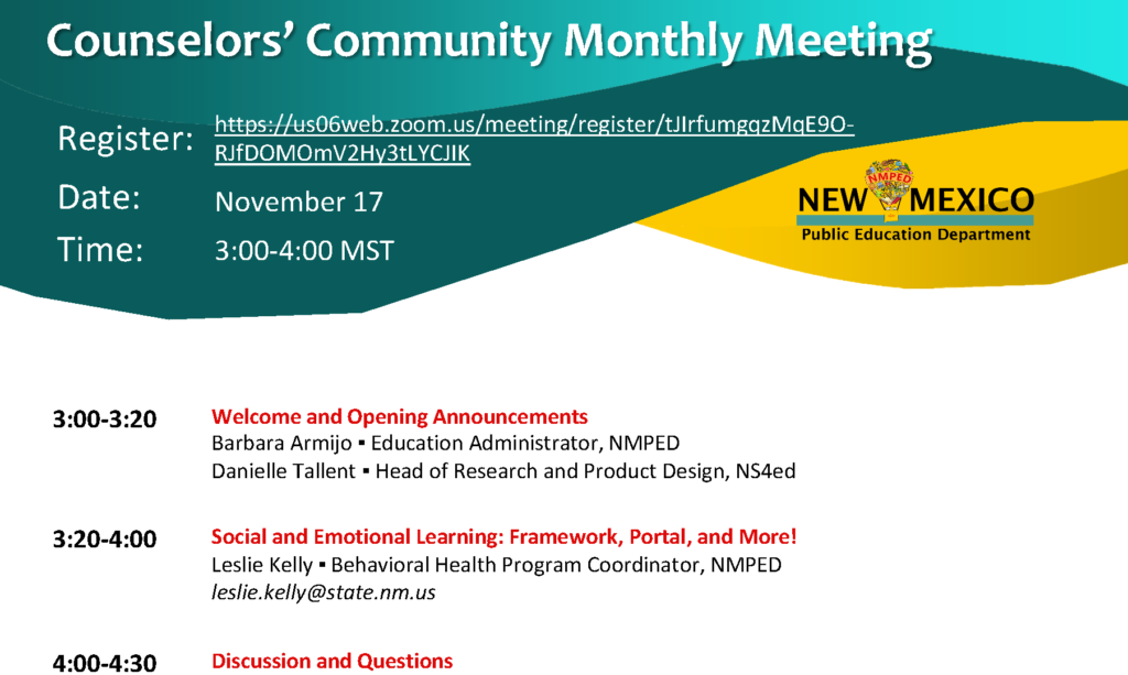 Counselors’ Community Monthly Meeting – November 17, 2021