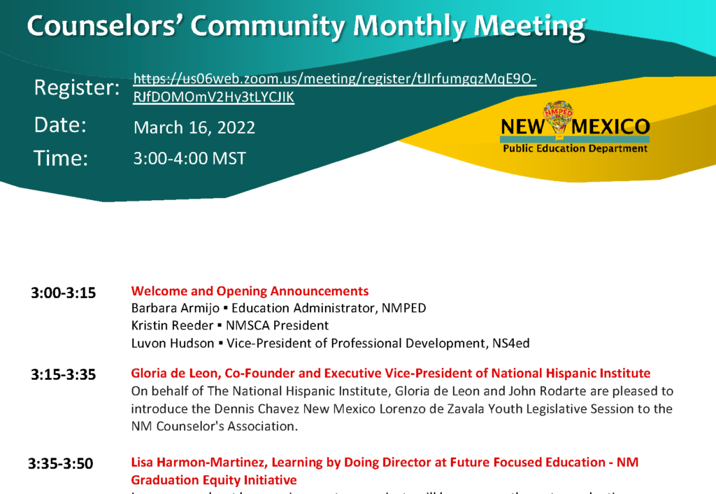 Counselors’ Community Monthly Meeting – March 16, 2022